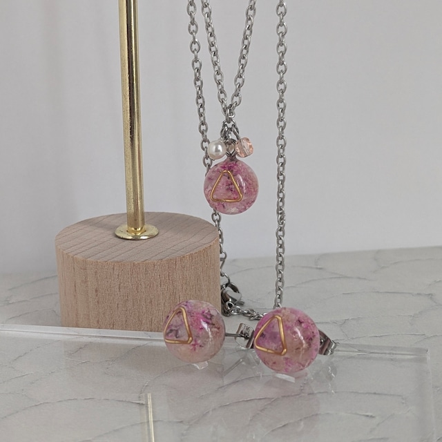 【BASEオンラインお一人様限定】 いちごみるくのトライアングルピアス・ネックレスセット買いがお得になります。 こちらでまとめてお買い上げ頂けると20%OFFになります。 セットだと更に可愛い上に、統一感が出るコーディネートが出来るます! 是非チェックして見て下さい。 いちごみるくのトライアングルピアスです。 いちごみるく色のドライフラワーとゴールドのトライアングルを閉じ込めたアクセサリーシリーズです。 まるでいちごみるくを思わせる色で染められたかすみ草のドライフラワーは、優しくも華やかです。 ゴールドのトライアングルを合わせる事で、大人っぽく可愛くを表現しました。 普段使いからお出かけやデートなどの装いにもピッタリ! 白っぽい服と合わせると、ふんわり可愛いコーディネートになりますし 黒っぽい服だと、大人っぽくエレガントなコーディネートに なんて、色々なカラーで楽しめますね。 金属部分は全てSUS316を使用しており、耐久性のある素材で長く輝きが続きやすいです。 大切な友人へのギフトや、自分へのご褒美に! ラッピングも承ります。(有料) 一つ一つ心を込めて製作していますが、ハンドメイド商品ですので若干大きさの違いや気泡などがありますが、それも世界に1つだけのデザインです。 レジンは黄変しにくい素材・ステンレスは錆にくい素材の物を使用していますが、使用環境により異なりますます。長くお使い頂く為にご使用後は柔らかい布などで拭いて、直射日光を避けて保管することをおすすめします。 SUS316を使用しておりますが、肌に合わない場合は直ちに使用を中止して下さい。※症状の発生には個人差があります。 また、他のサイトでも販売しているため、在庫が無くなった場合は予告なく削除されることがありますので、気になる商品はお早めに! 素材 エポキシレジン ドライフラワー ステンレス(トライアングル) SUS316(サージカルステンレス) 発送までの目安: 3日以内 ネックレス単品はこちら https://lapis01ru.base.shop/items/125914411 ピアス単品はこちら https://lapis01ru.base.shop/items/122799151