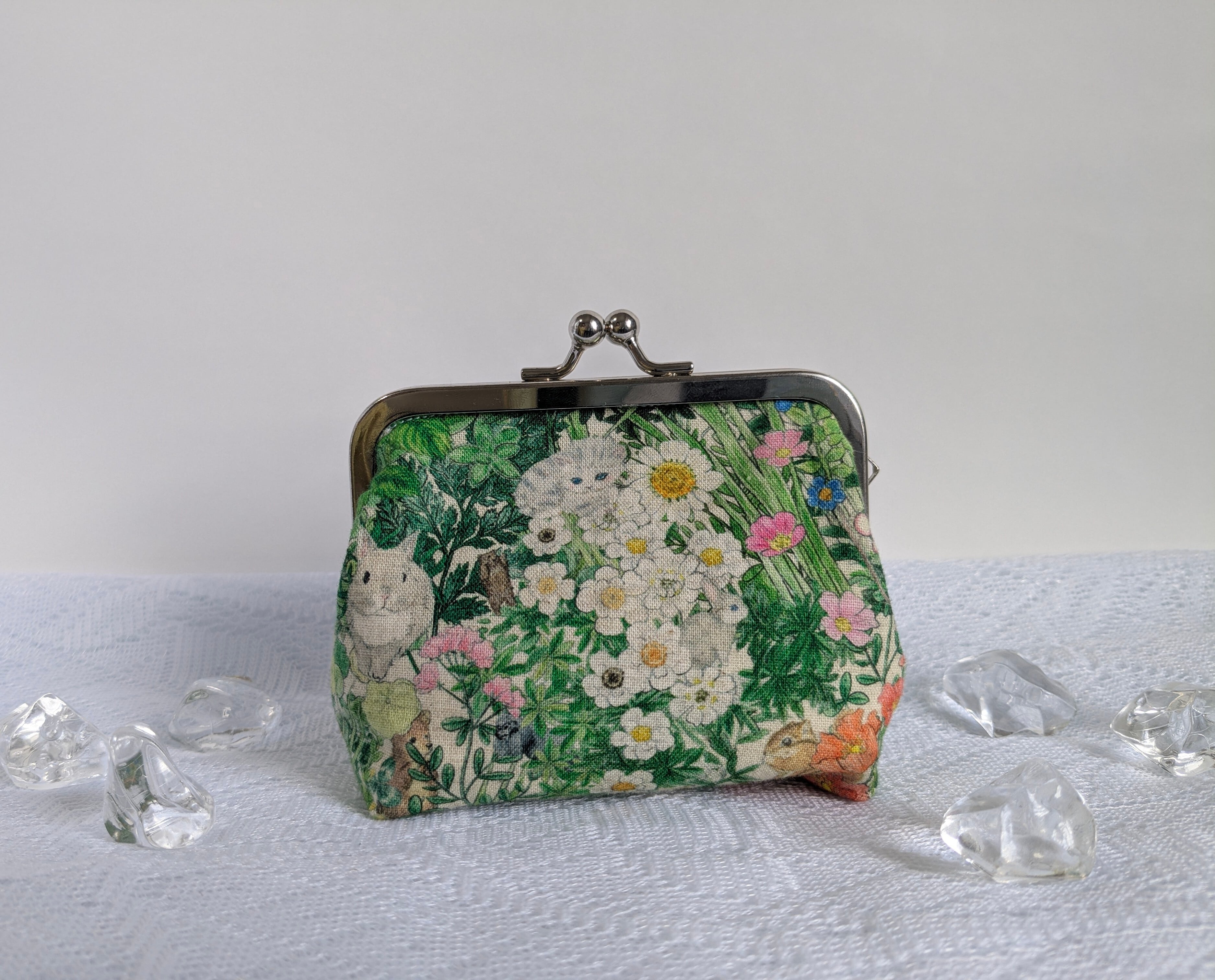 たくさんの動物達が隠れ居て見てるだけでも楽しいがま口ポーチです。