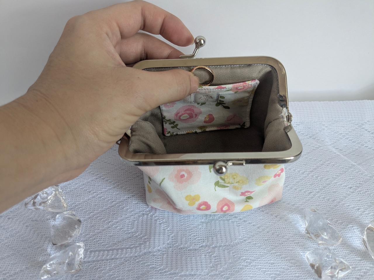 内側には小さなポケット付きで、指輪や薬などのちょっとしたアイテムをしっかりと収納できます。