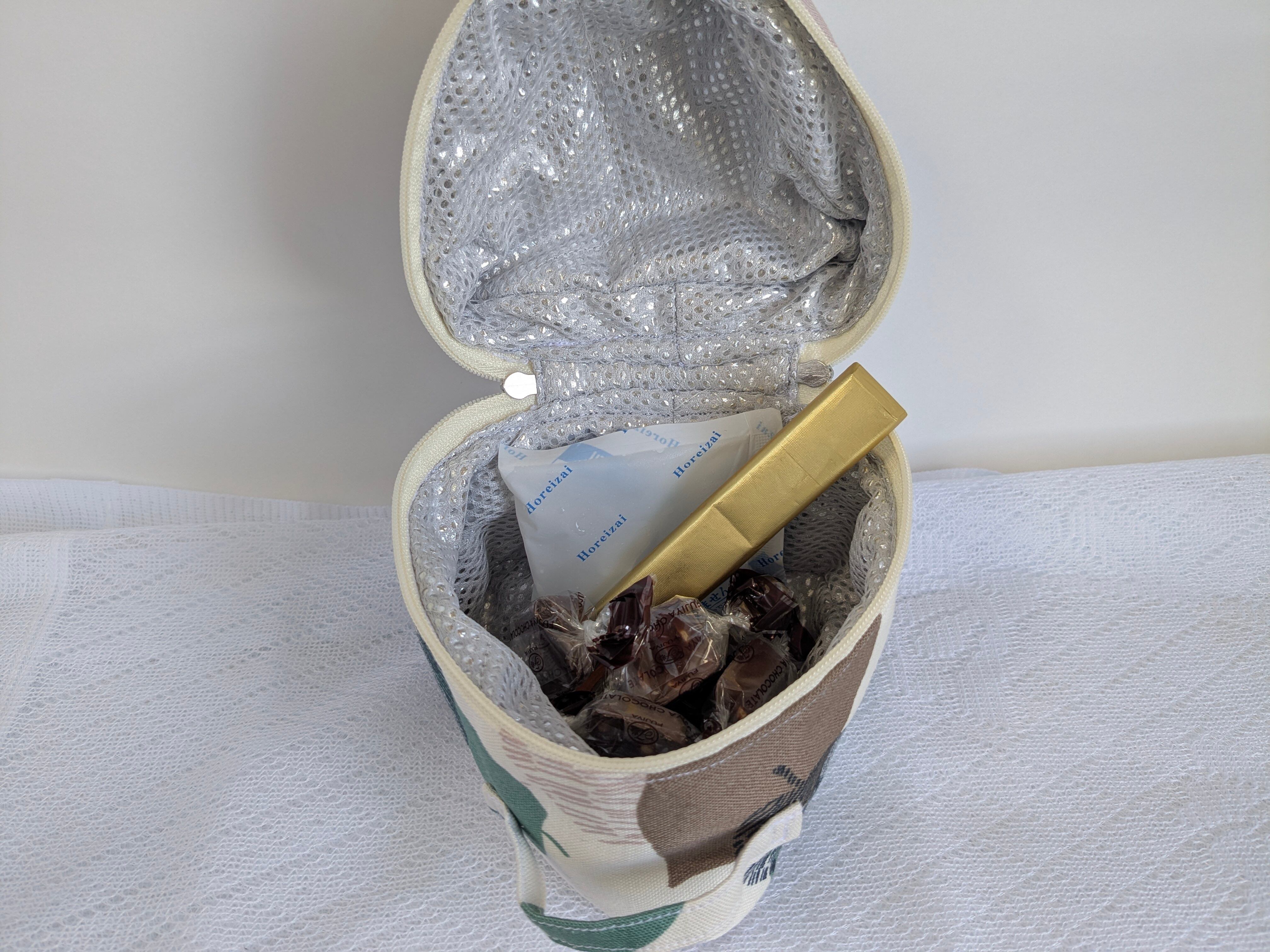 可愛さだけでなく、内側には保冷保温アルミを使用しており保冷剤を入れて使えます。