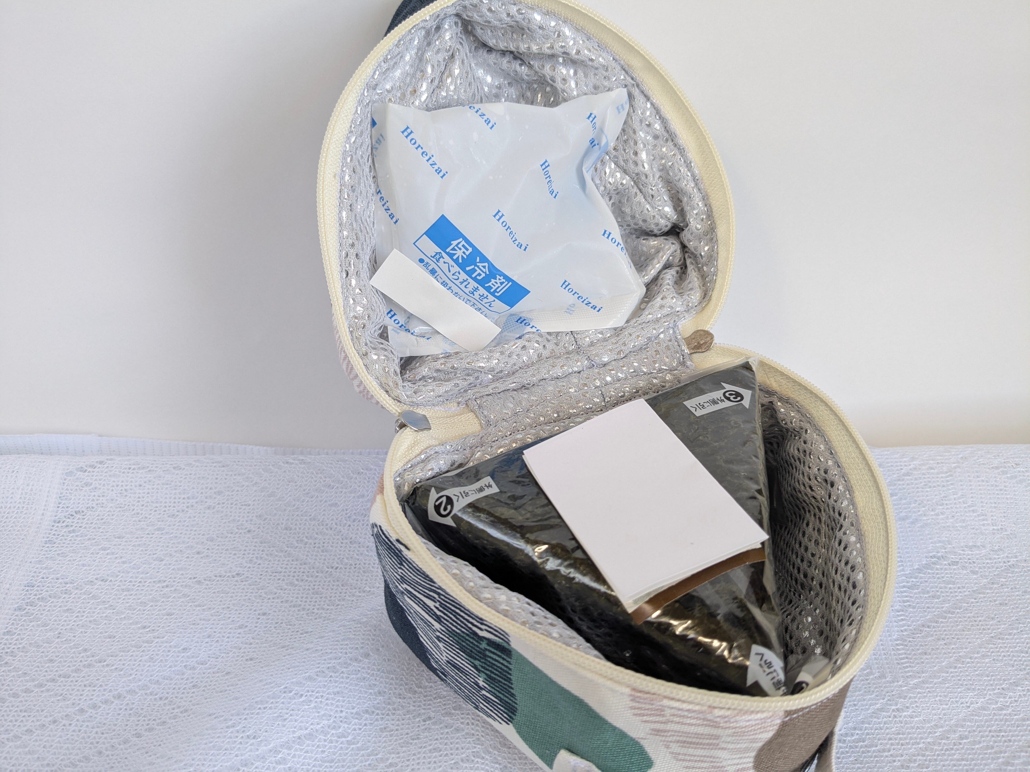 おにぎりだけでなく、果物やゆで卵を入れてもいいし溶けやすいチョコを保冷剤と一緒に入れたり使い方が広がります。