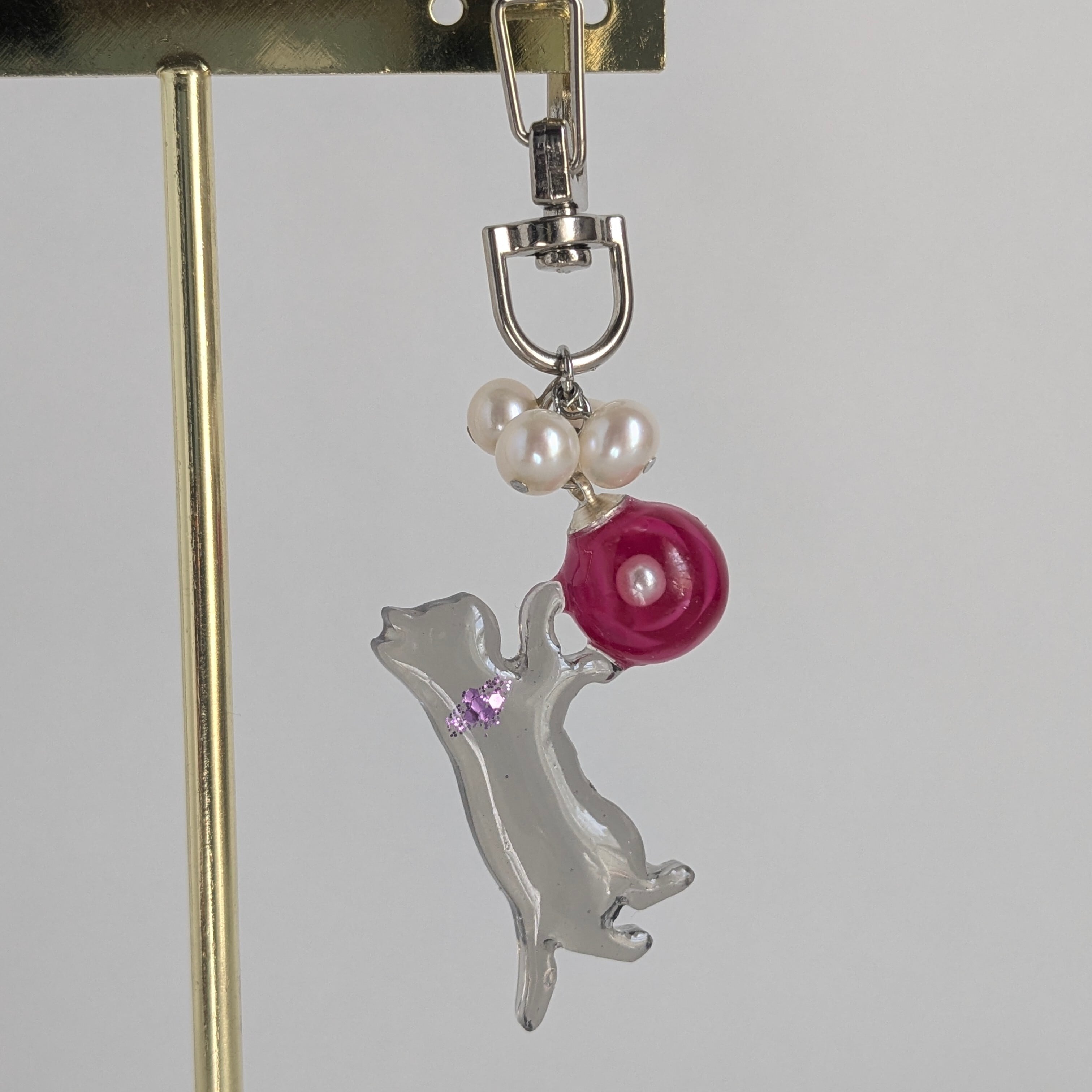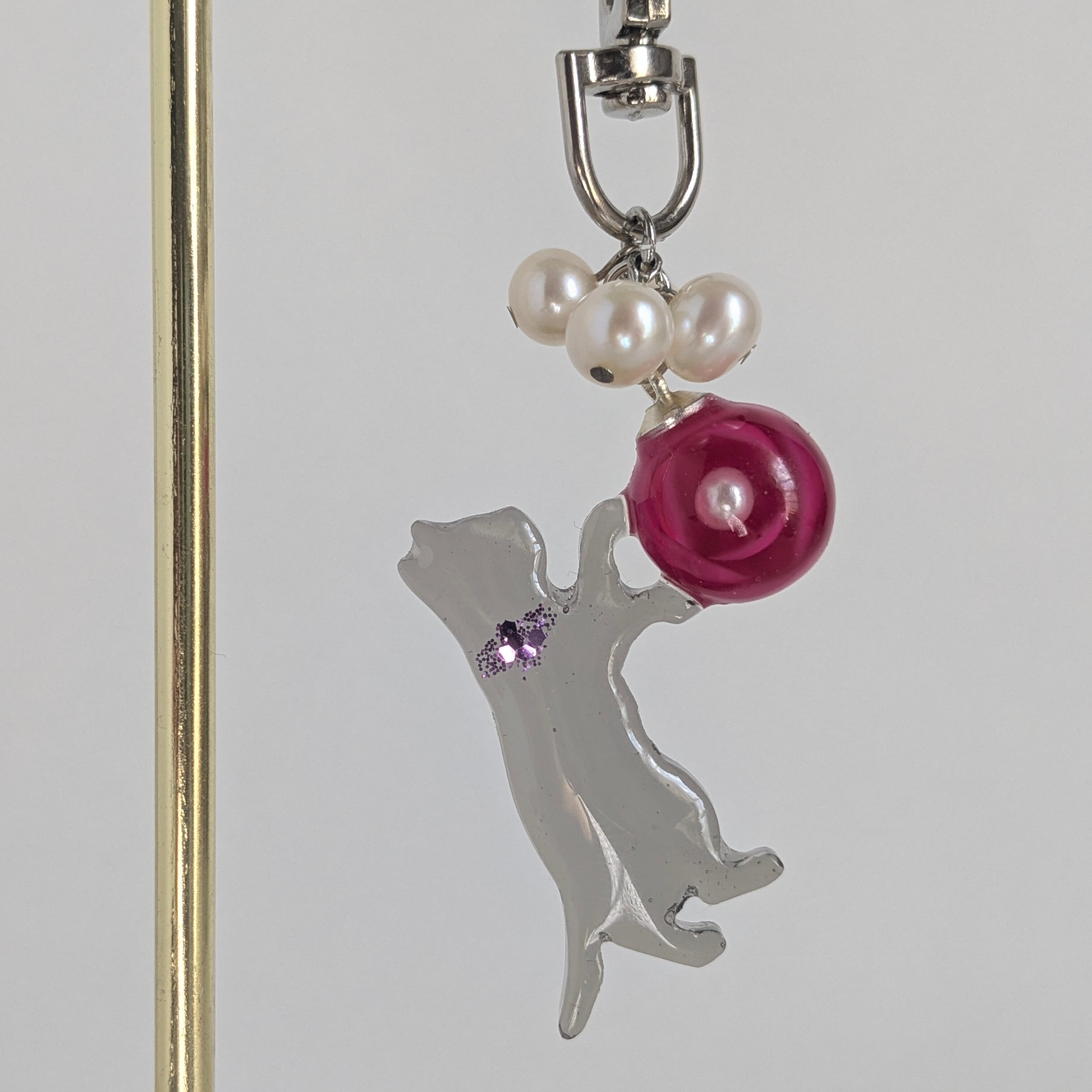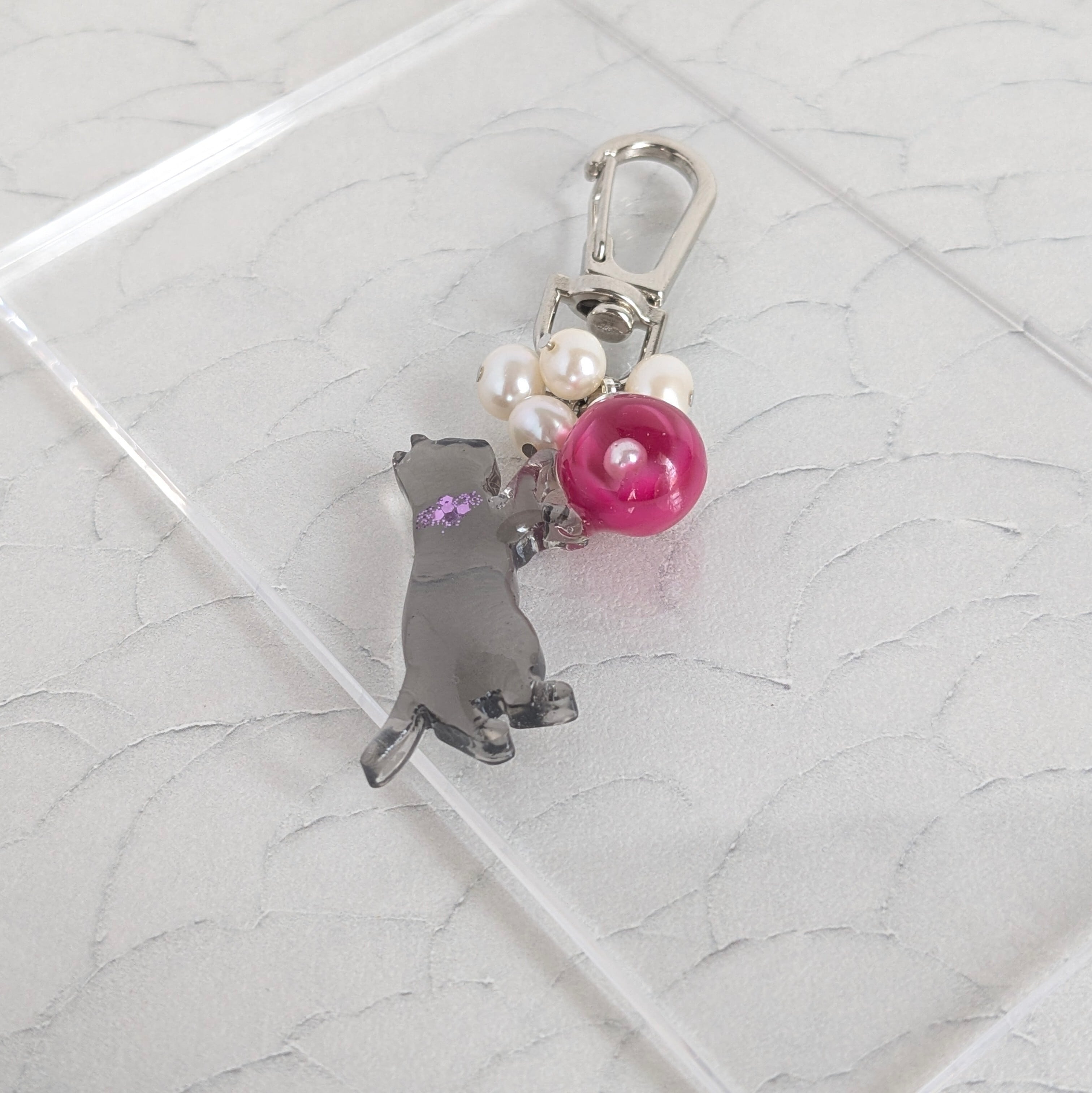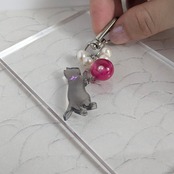 愛らしい猫ちゃんがフラワーボールで遊んでいる姿をモチーフにしたチャームです。