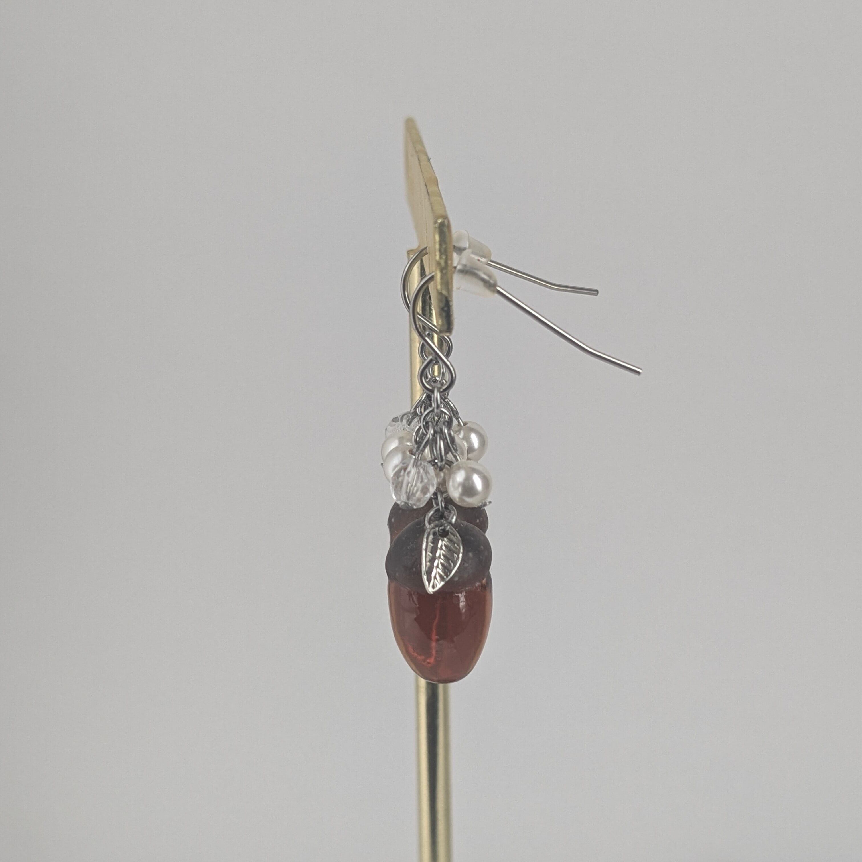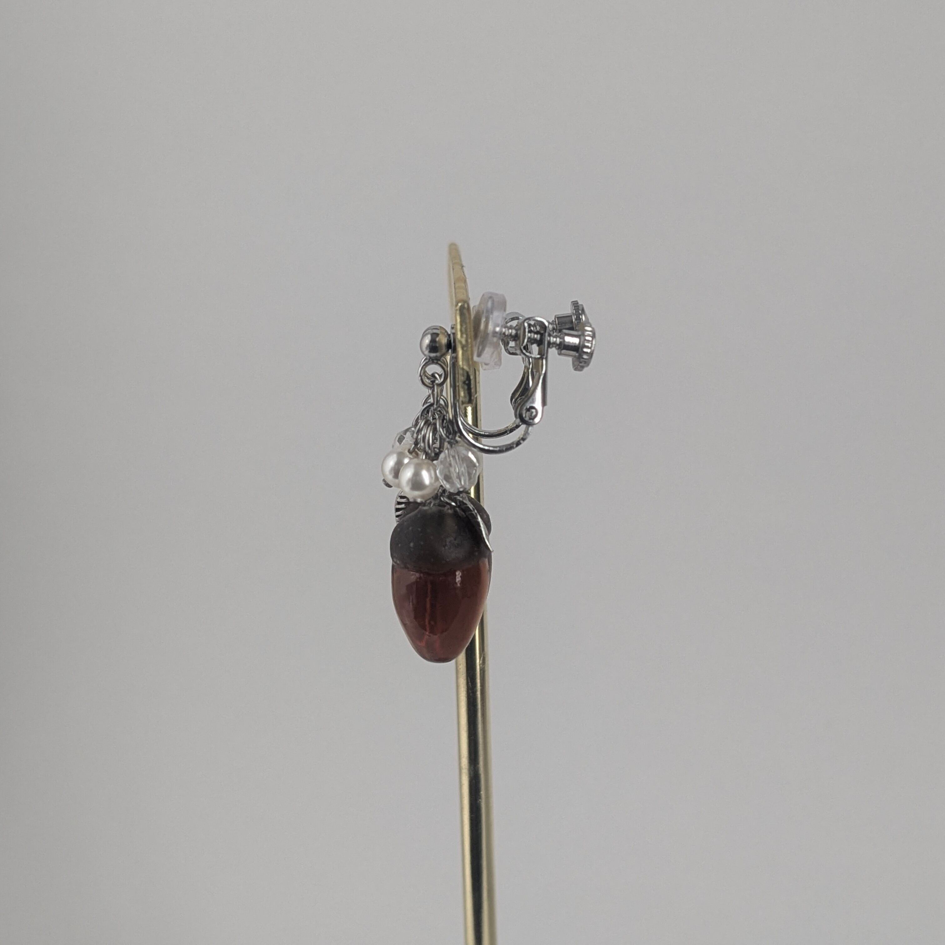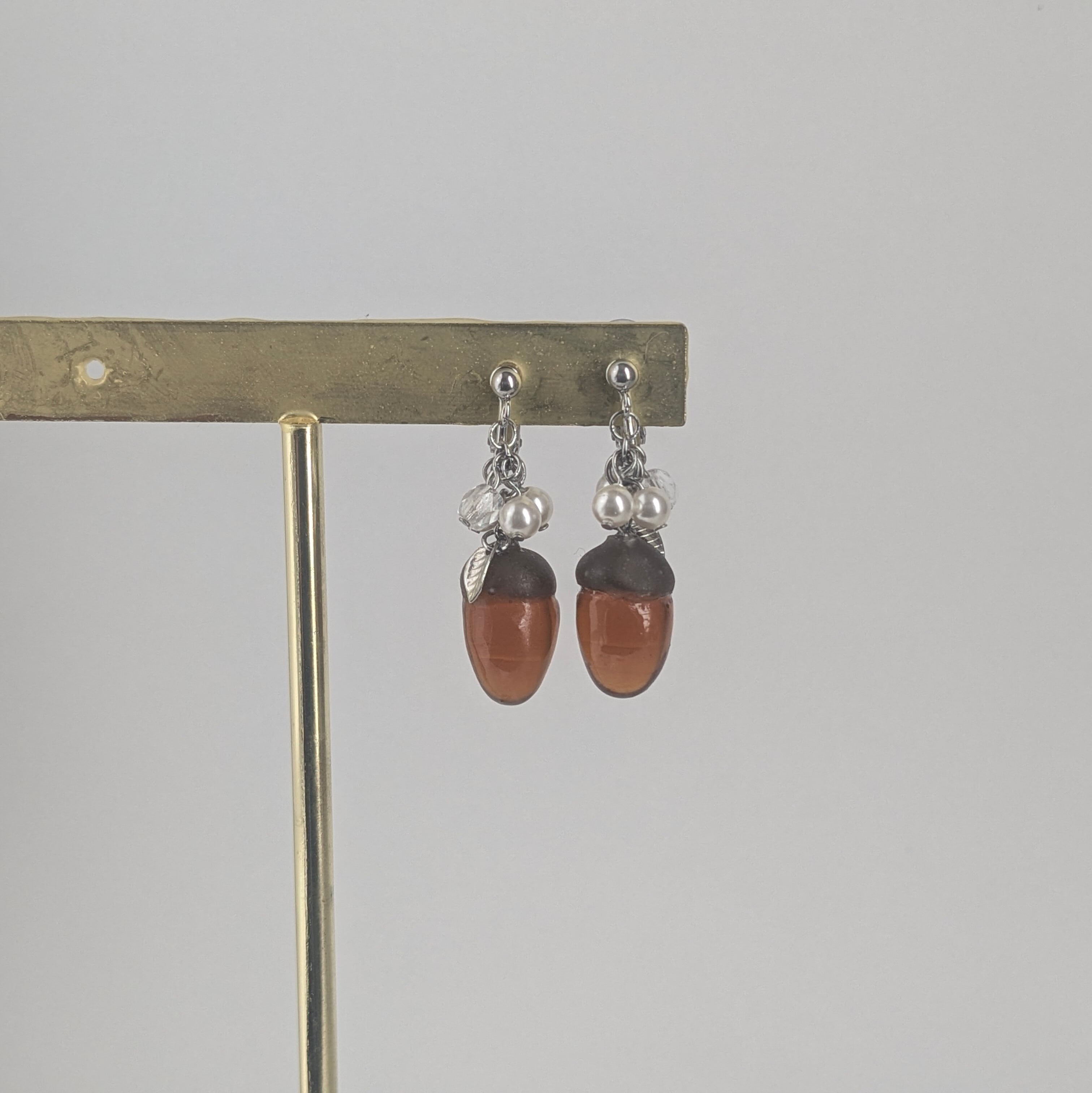 コロッと可愛いどんぐりをモチーフを型から作ったオリジナルの耳飾りです。