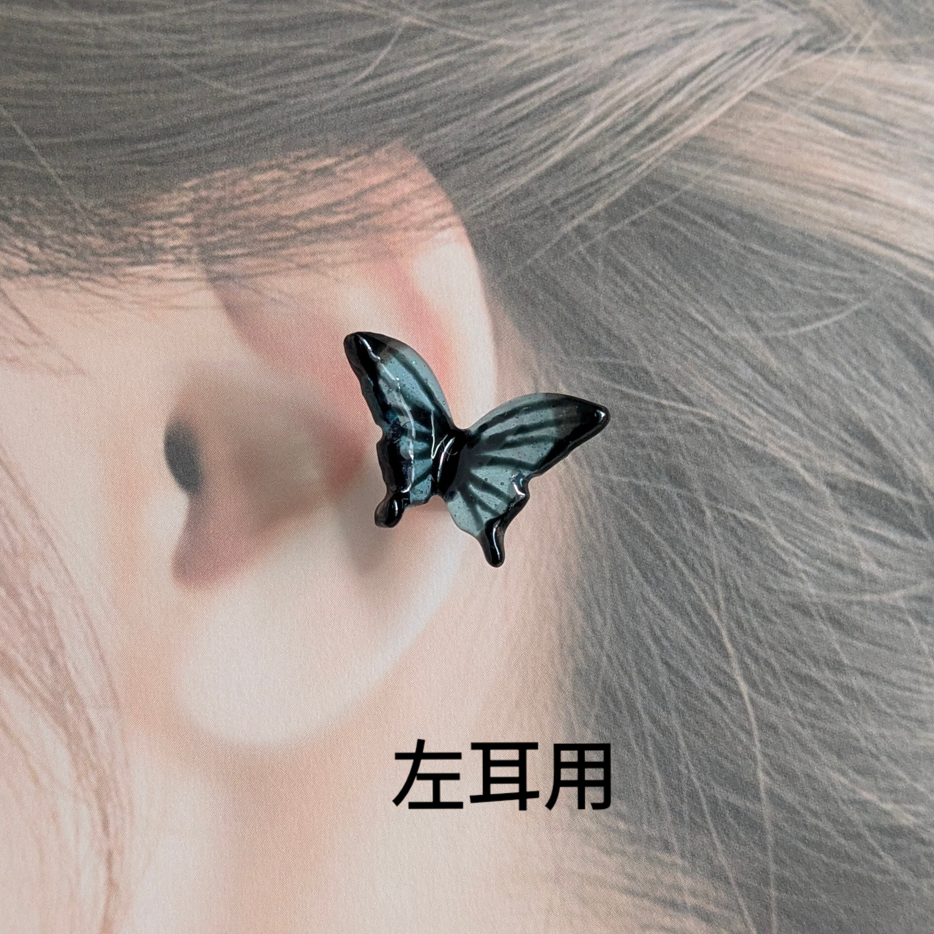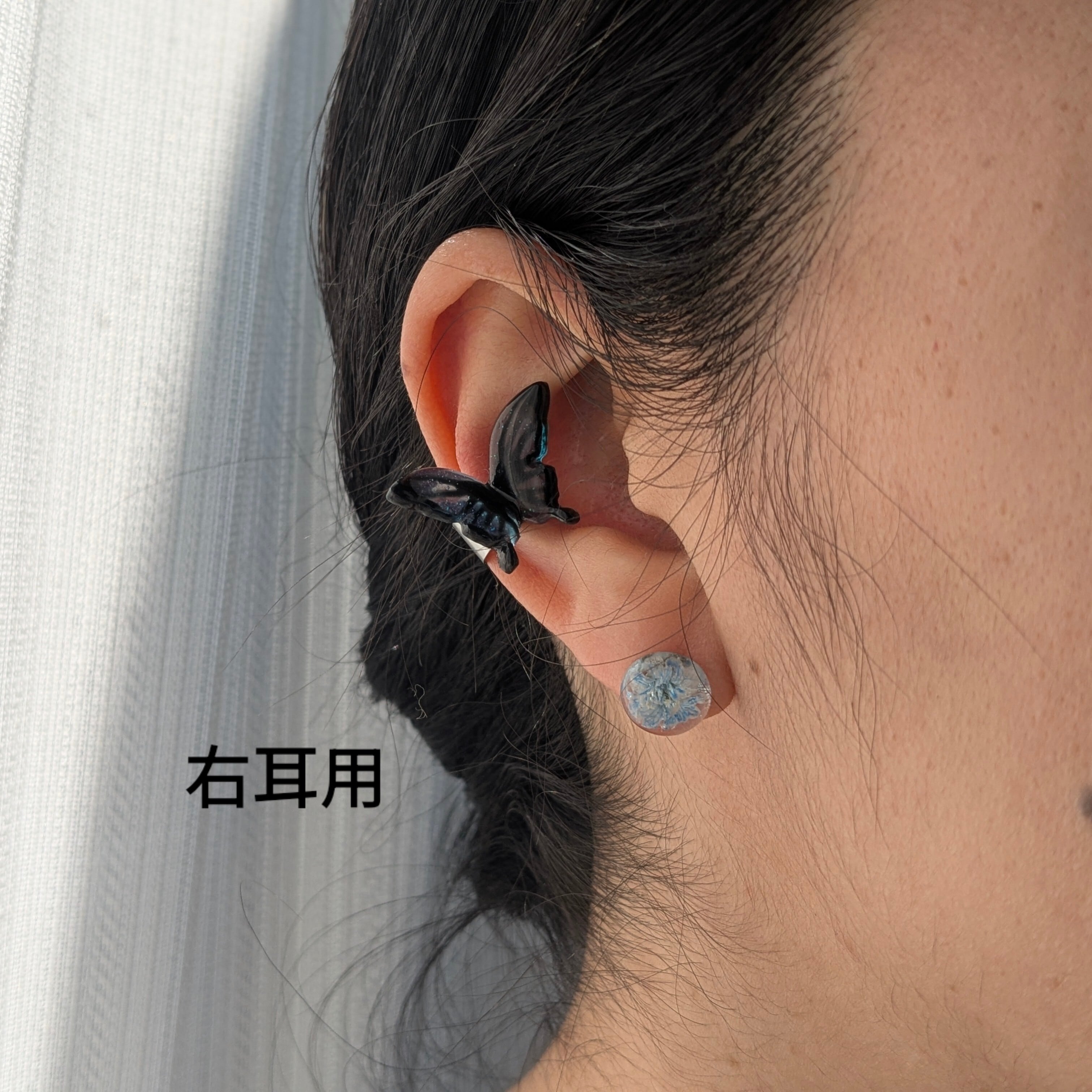普通に耳たぶに蝶々でも良かったのですが、これは耳の真ん中辺りにある方が絶対可愛い!!と確信し今回はイヤーカフにしました。