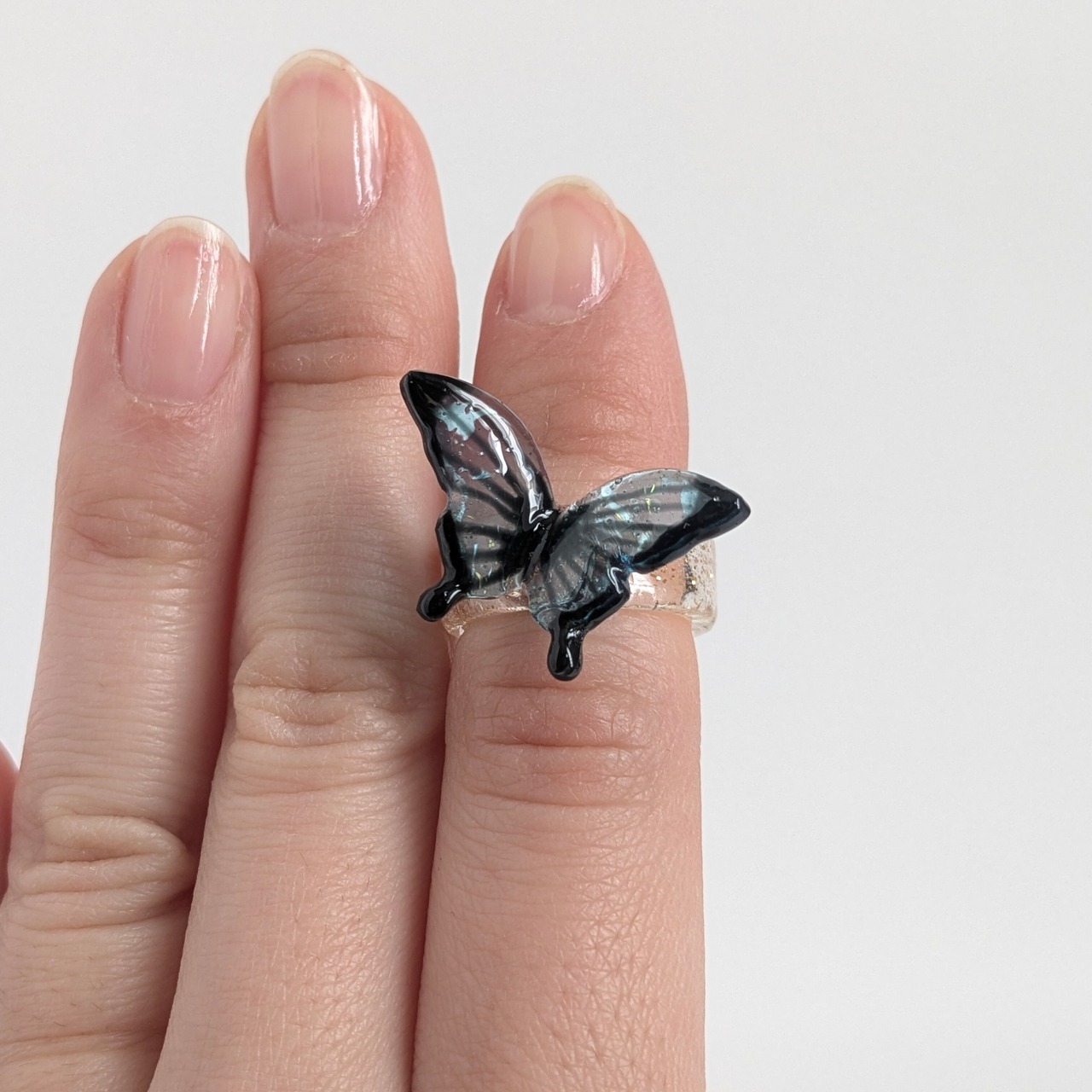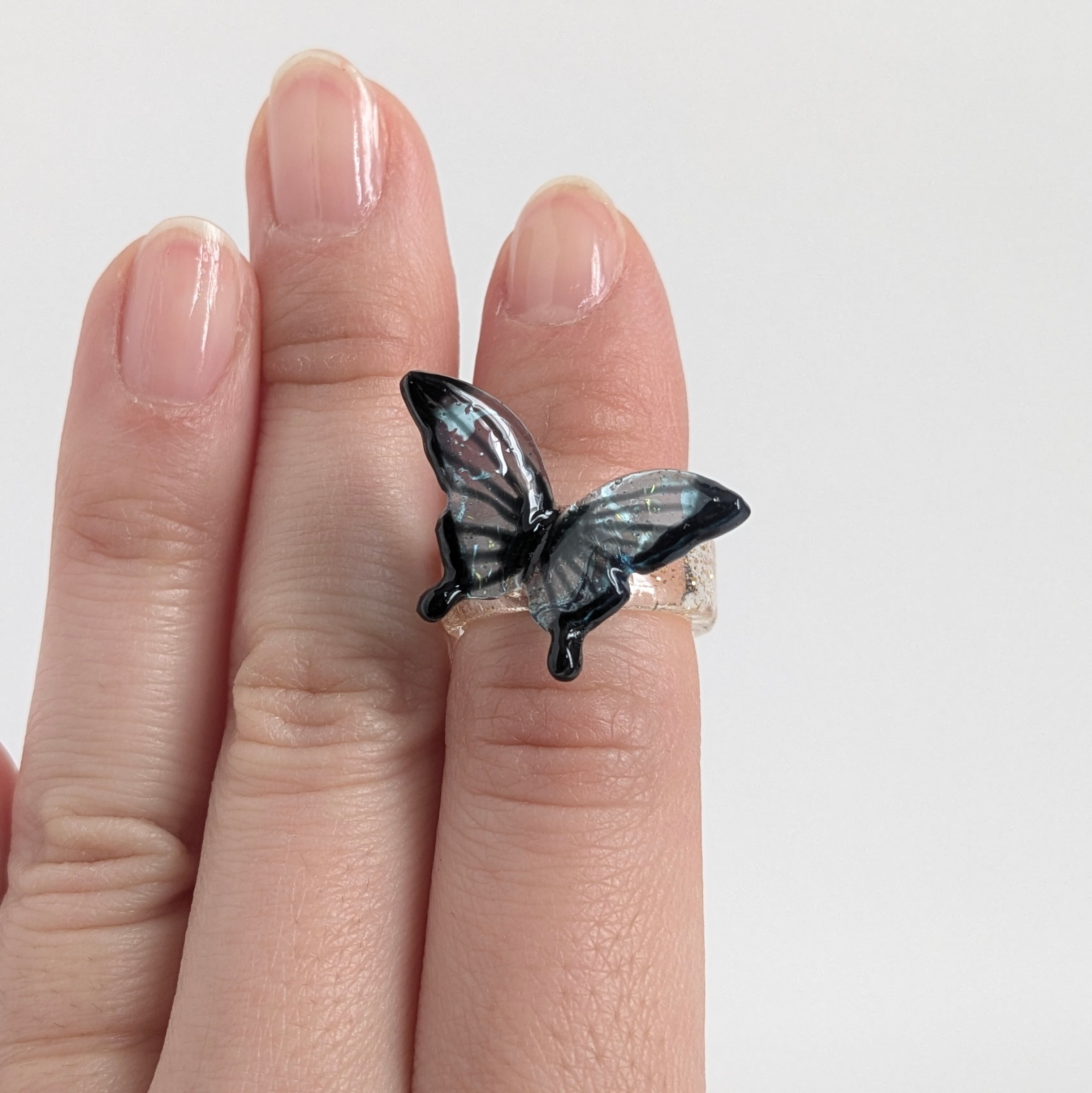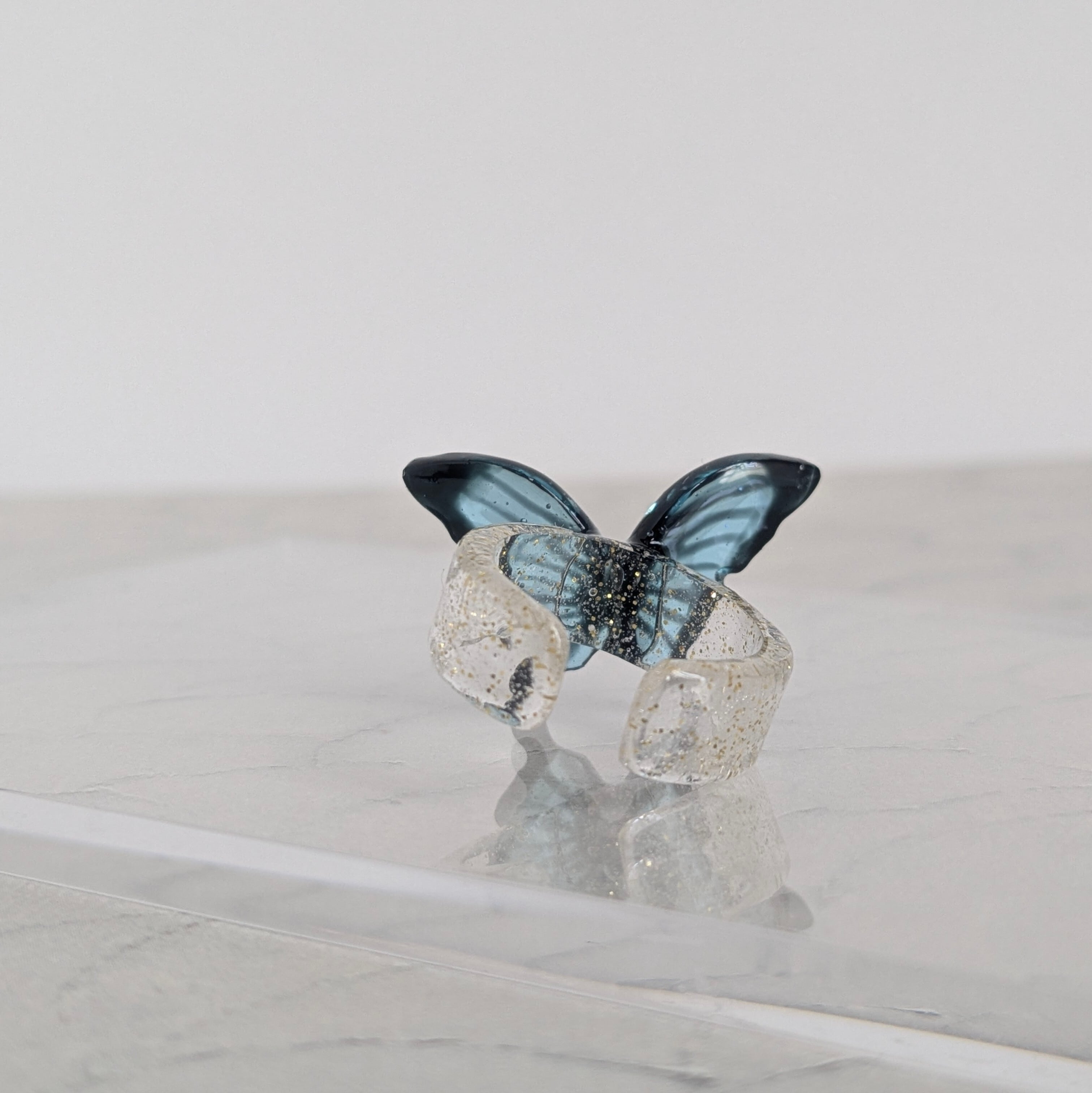そこで蝶々のアクセサリーを作った時この蝶々の形だ!と思い付いたのがこのリングです。