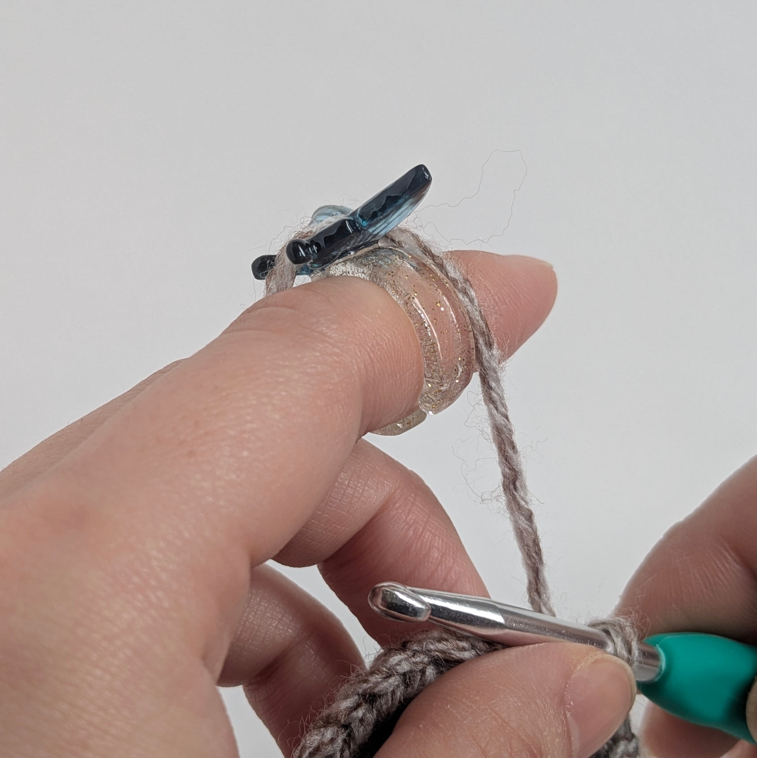 リングの幅が細く今度は指の側面が糸が当たって痛くなる。